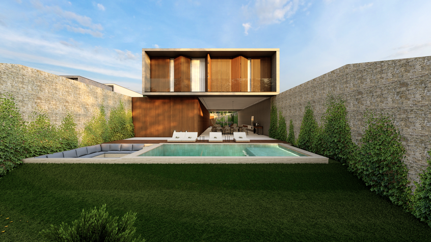 Localizado no bairro de Alto de Pinheiros, em São Paulo, o projeto foi cuidadosamente concebido em um terreno de 1.000m², com uma área construída de 615m². A proposta busca unir sofisticação, funcionalidade e integração com a natureza.